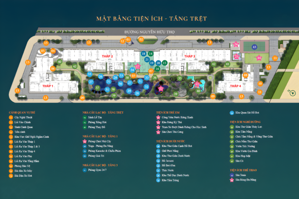 Thiết kế Celesta Heights chú trọng phát triển không gian nội khu theo hướng sống xanh và nghỉ dưỡng giữa lòng đô thị. Cảnh quan được đầu tư đồng bộ với sự kết hợp hài hòa giữa mảng xanh, mặt nước và các không gian mở. Lối đi bộ nội khu được bố trí xuyên suốt, tạo điều kiện cho cư dân dễ dàng di chuyển và tận hưởng không khí trong lành mỗi ngày. Các khu vực thư giãn ngoài trời được sắp xếp hợp lý, vừa đảm bảo tính thẩm mỹ, vừa phục vụ nhu cầu sinh hoạt, nghỉ ngơi. Tổng thể không gian mang lại cảm giác thoáng đãng và cân bằng.