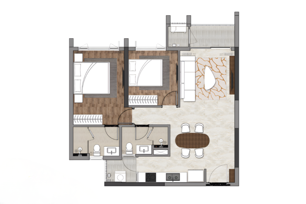 Với cách bố trí linh hoạt, thiết kế căn hộ 2 phòng ngủ trong tổng thể thiết kế Celesta Heights giúp tối ưu diện tích sử dụng và nâng cao sự tiện lợi trong sinh hoạt. Loại hình này phù hợp với các gia đình trẻ có nhu cầu ở lâu dài, vừa đảm bảo không gian chung ấm cúng, vừa duy trì sự riêng tư cho từng thành viên.