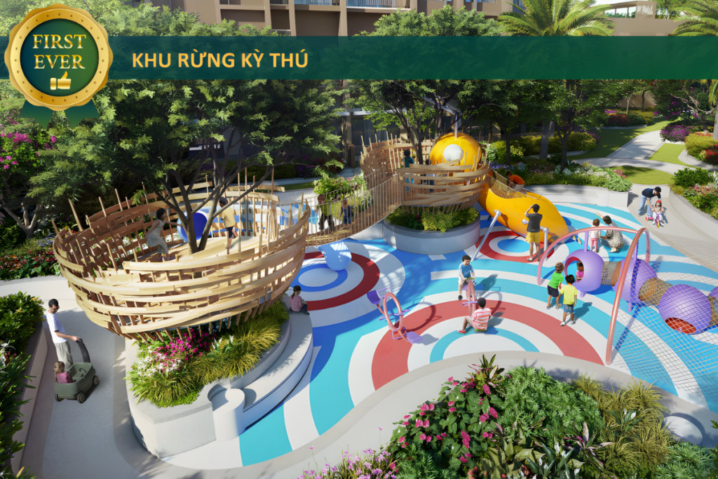 Khu rừng kỳ thú là một trong những tiện ích được thiết kế theo mô hình mô phỏng thiên nhiên thu nhỏ. Thay vì các thiết bị vui chơi đơn lẻ, khu vực này ưu tiên bố cục mở với nhiều không gian xanh.