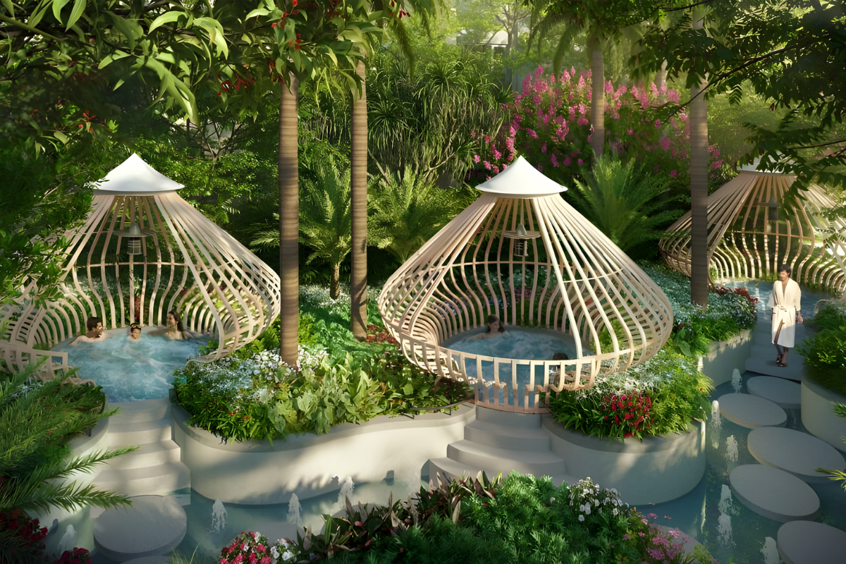 Không gian vòm trúc được thiết kế như một điểm nhấn xanh mang tính thiền – tĩnh, tạo cảm giác an yên và tách biệt khỏi nhịp sống ồn ào. Việc sử dụng trúc – vật liệu thiên nhiên giàu giá trị biểu tượng Á Đông – mang đến môi trường lý tưởng cho thiền nhẹ, thư giãn tinh thần và hít thở sâu. Tiện ích này giúp gia tăng chiều sâu trải nghiệm nghỉ dưỡng, vượt ra khỏi vai trò trang trí đơn thuần để trở thành không gian sử dụng thực tế cho cư dân.