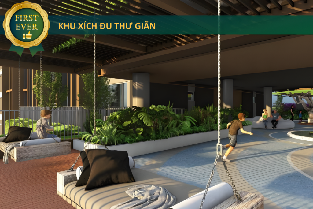Tiện ích này phù hợp với nhiều độ tuổi, đặc biệt là người lớn và người cao tuổi, đồng thời trở thành điểm nhấn mềm mại trong tổng thể cảnh quan tầng 2, khác biệt rõ rệt so với các khu ghế nghỉ hành lang hay không gian công cộng thông thường.