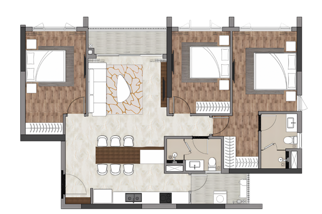 Với cách tổ chức mặt bằng hợp lý, loại hình căn hộ này phù hợp với gia đình trẻ có hai con hoặc các gia đình hạt nhân đang tìm kiếm không gian sống tiện nghi nhưng vẫn đảm bảo tính riêng tư cho từng thành viên. Việc phân bổ công năng rõ ràng giúp tối ưu chi phí sở hữu, đồng thời vẫn đáp ứng tốt các yêu cầu về sinh hoạt, học tập và làm việc trong cùng một không gian căn hộ.